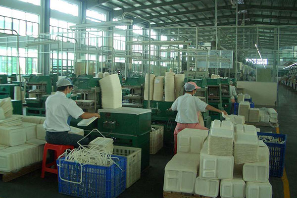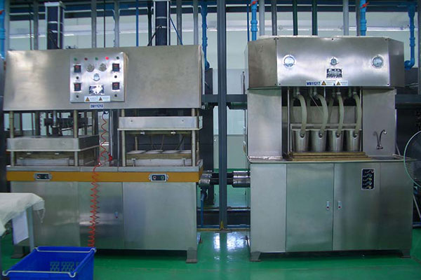 紙漿模塑一次性餐飲具生產(chǎn)線以木漿及各類(lèi)草漿的漿板為原料,經(jīng)碎解、篩選、磨漿、添加化學(xué)劑等工藝調(diào)配成一定濃度的漿料,然后通過(guò)真空作用使紙漿均勻地附著在特制的金屬模具上形成濕坯制品,再經(jīng)干燥、熱壓、消毒工序生產(chǎn)出一次性紙漿模塑餐飲具制品。